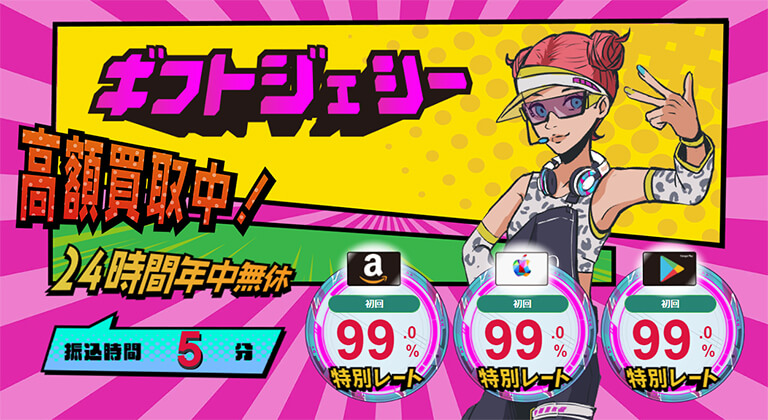 オンライン上で購入することができ、基本的には購入後すぐにコードが送られるので、このコードを即日買取可能な業者に売却することで現金化できます。