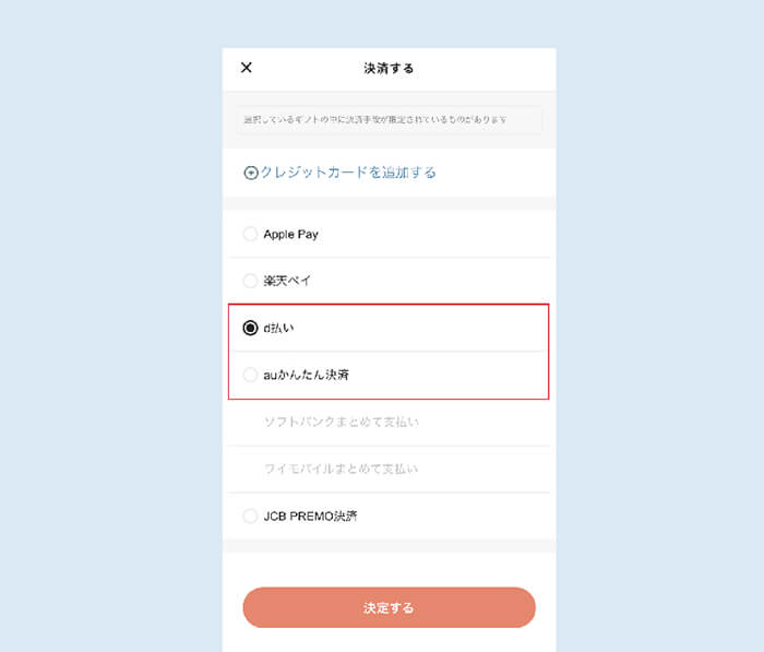 - 「お支払いと配送先」をタップ>「お支払い方法を追加」をタップ