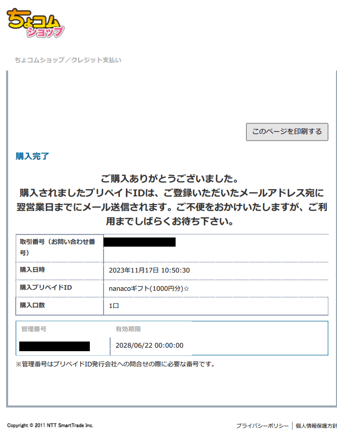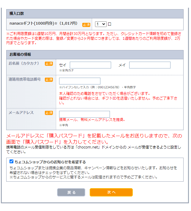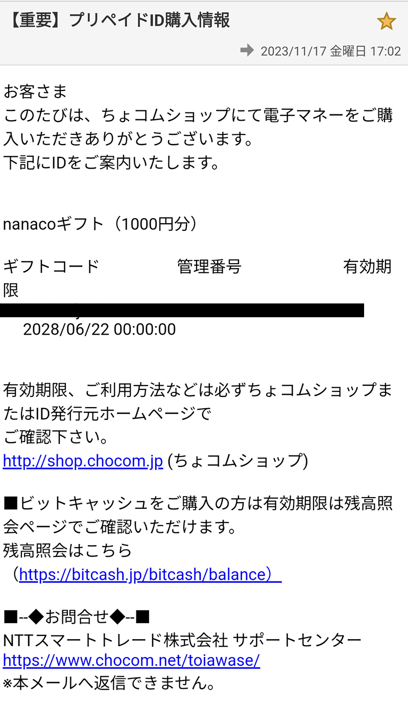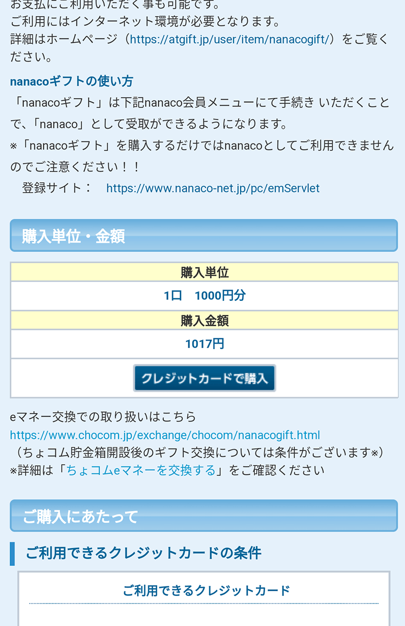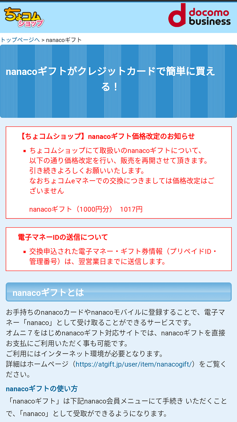 ちょコムショップでnanacoギフトを買ってみた
