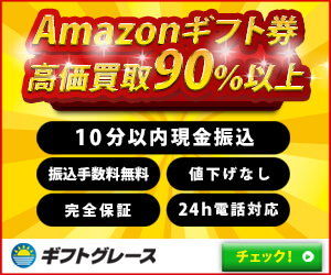 概要にもある通り「株式会社ノア商社」が運営会社で、ギフト券買取以外にも、家電製品の卸売りやネットショップを経営しているようです。古物営業許可証を取得しており、運営会社もはっきりと掲載されていることから安心して利用できるギフト券買取業者です。ギフトグレースの強みはやはり、他社では買取りを行っていない多種多様なギフト券の買取りを行っているところです。アカウント登録済のAmazonギフト券買取を行っているギフト券買取業者はほとんどありませんので、ギフトグレースならではと言えます。また、Amazonギフト券で初回利用の方は換金率も業界最高水準ですのでおすすめです。換金率も業界最高水準。振込時間は最短1時間~翌日中なので、他ギフト券買取店舗と比べるとギフトグレースの振込が特別早い訳ではありませんが、急ぎでなければ問題ないのと、買取率UPプランを利用することが出来る点も見逃せません。ギフトグレースでは売却金額が10,000円未満の場合は手数料216円が掛かる反面、月間300万円以上の大口取引をされる場合は買取率が上がります。高額売却をお考えの方は必見ですね。